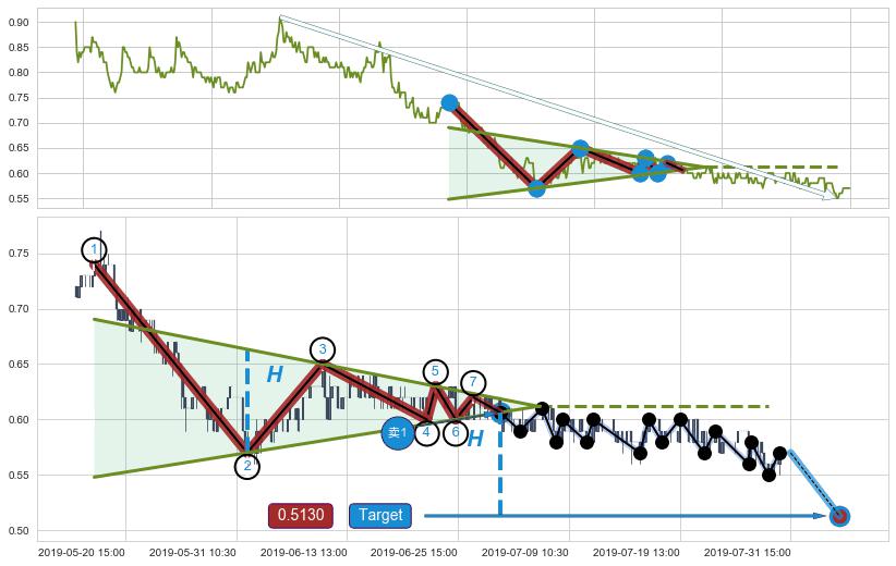 ➢ 最小中继整理涨幅→𝐇: 0.0800000 (𝐇楔型旗杆的长度:楔型起点→顶点)