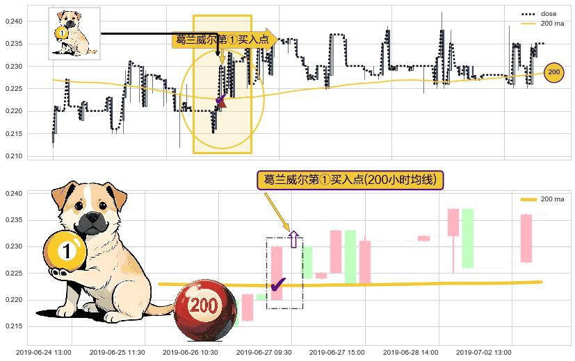 ⚀ 2019-06-27 09:30:00-小时显现 葛兰威尔均线 200小时均线 第买①入点 走势反转见底信号,后市看涨,买进信号