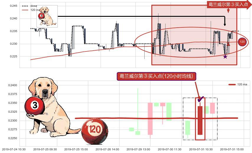 ⚀ 2019-07-30 15:00:00-小时显现 葛兰威尔均线 120小时均线 第③买入点 上升趋势的中继信号,后市看涨,买进信号