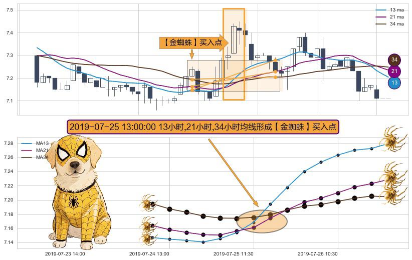 ⚀ 2019-07-25 13:00:00小时显现 13小时-21小时-34小时均线 【金蜘蛛】买入点 看多信号,后市看涨,买入
