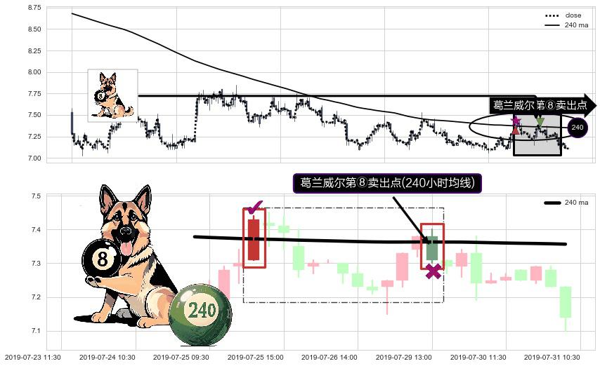 ⚀ 2019-07-29 13:00:00-小时显现 葛兰威尔均线 240小时均线 第⑧卖出点 下降趋势的中继信号,后市看跌,卖出信号