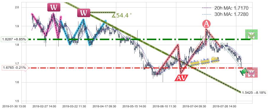 ♘ 阻力价格位1.8287,可信任强度97.09%,距离最后交易2019-07-31 15:00形成的收盘价格1.6800相差 +8.85%