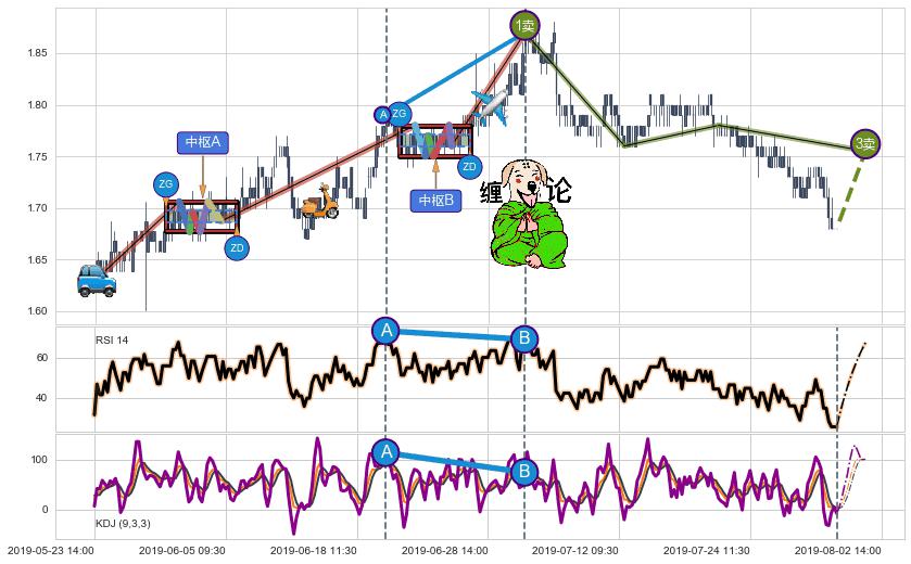 ➣ 【已完成】缠论 起点:05-23:14,完成第1中枢A,完成第2中枢B,终点:07-04:09,缠论共284交易小时
