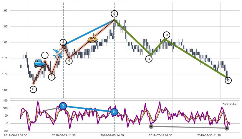 ➣ a,c调整浪MACD, RSI, KDJ走势都【未出现】背离,abc走势延续, 5浪反转概率增强
