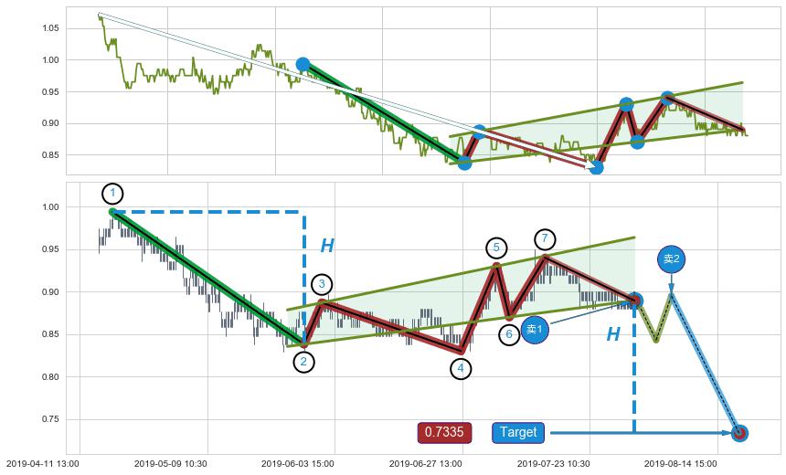 ➣ 最小中继整理跌幅→𝐇: 0.156000 (𝐇旗杆的长度:旗杆起点→顶点)