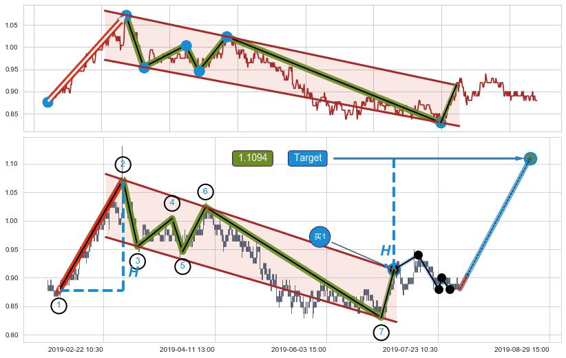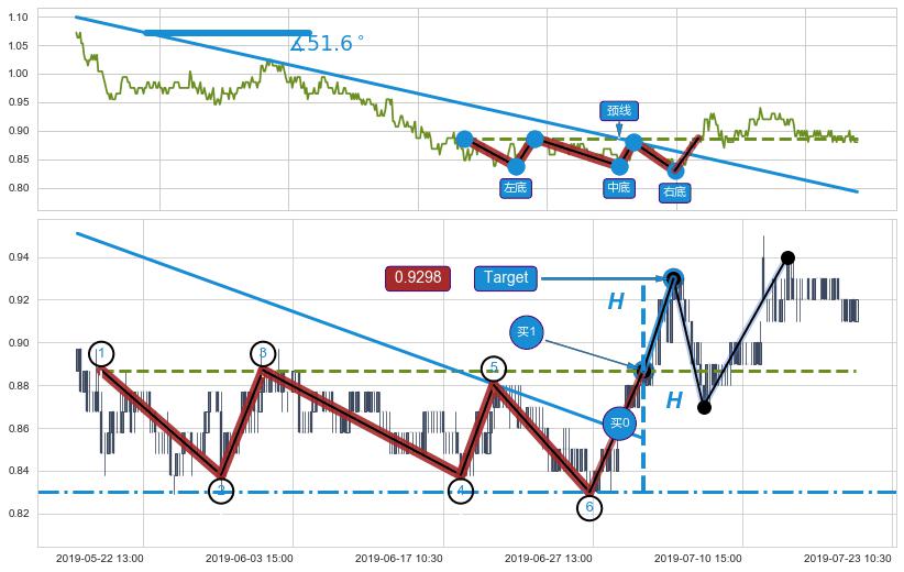 ➣ 最小反转涨幅→𝐇: 0.0978950 (头部与颈线垂直距离)