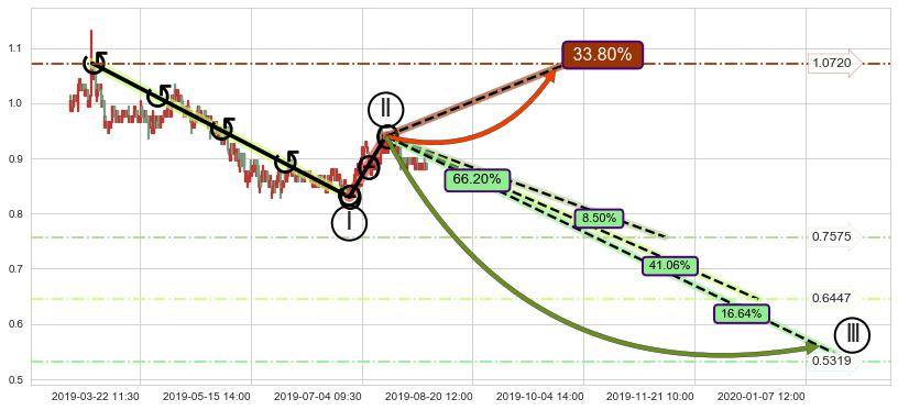 ➣ 调整浪已超过预测的c点位置,后续大趋势循环浪继续下跌概率66.20%,谨慎做多