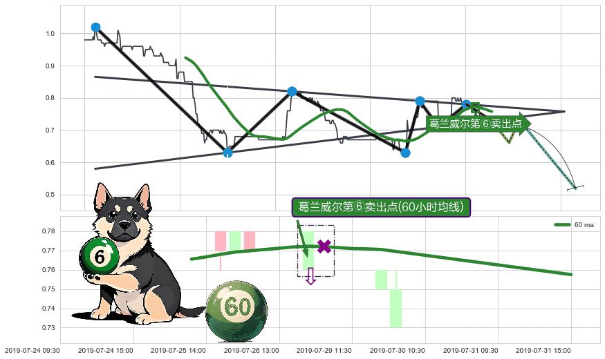 从2019-07-15 10:30至2019-07-31 15:00,共包含77个小时,阶段股价下跌-6.64%,阶段股价变动位移路程比: 1 : 7