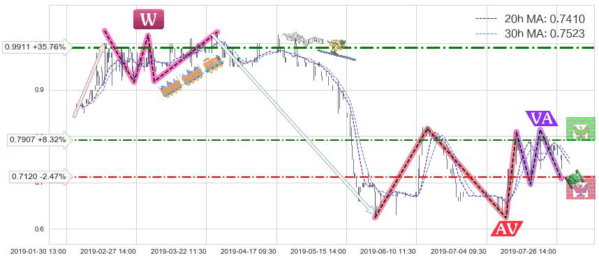 ♘ 阻力价格位0.7907,可信任强度53.17%,距离最后交易2019-07-31 15:00形成的收盘价格0.7300相差 +8.32%
