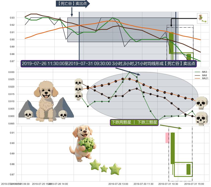 从2019-07-29 14:00至2019-07-31 15:00,共包含14个小时,阶段股价下跌-2.20%,阶段股价变动位移路程比: 1 : 3