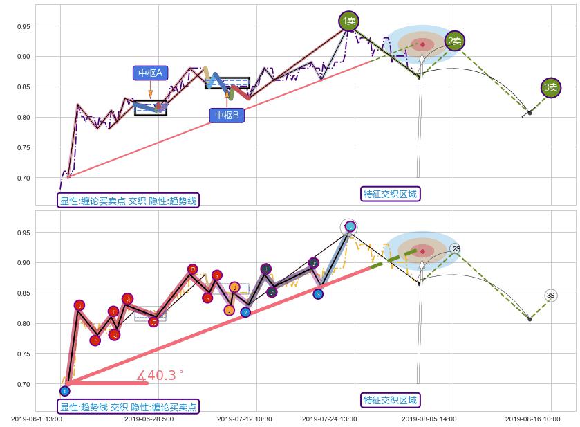 从2019-07-10 09:30至2019-07-11 13:00,共包含10个小时,阶段股价上涨0.06%,阶段股价变动位移路程比: 1 : 83