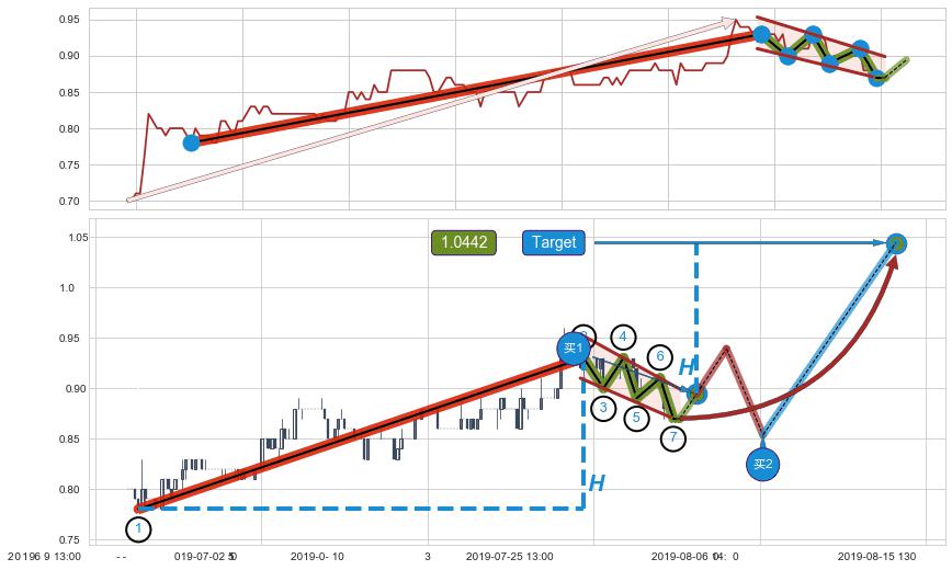 ➣ D点拟合预测价格0.8262,距离最后交易收盘价格0.8700相差 -5.03%