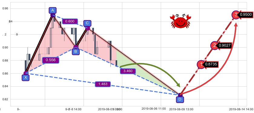 ➣ 未完成【螃蟹】形态起点X: 07-19:14, 已到达C点: 07-29:09, 预测最终D点: 08-08:09, 共79交易小时
