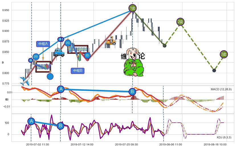 ➢ 【中枢A】:06-26:15-07-02:13,中枢由5笔构成,共17交易小时, ZG=0.8200, ZD=0.8100