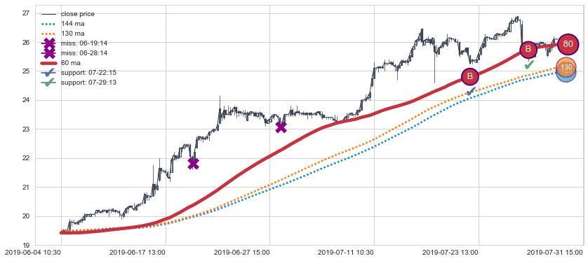 上涨趋势06-04 10:30-07-31 15:00,均线80确认关键支撑2处
