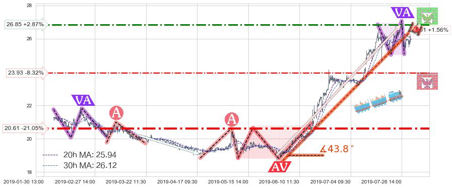 ♘ 阻力价格位26.85,可信任强度55.67%,距离最后交易2019-07-31 15:00形成的收盘价格26.10相差 +2.87%