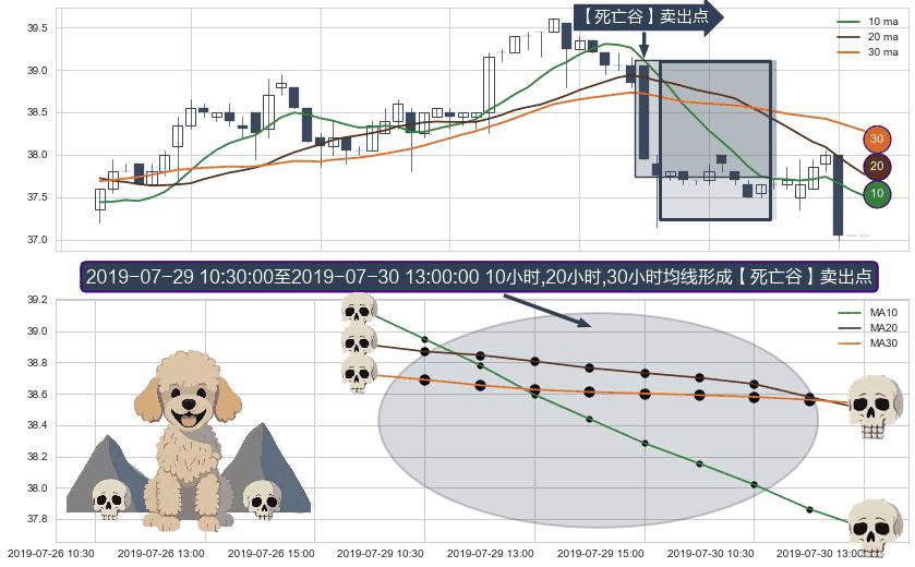 ⚀ 2019-07-29 11:30:00-小时至2019-07-30 13:00:00-小时显现 10小时-20小时-30小时均线 【死亡谷】卖出点 看空信号,后市看跌,卖出