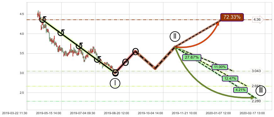 ➢ 循环浪继续向下【最低】位置(02-17:13, 2.280),匹配聚类样本比例15.21%, 可能性概率4.21%