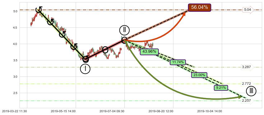 ♘ 支撑价格位3.573,可信任强度96.05%,距离最后交易2019-07-31 15:00形成的收盘价格3.950相差 -9.56%