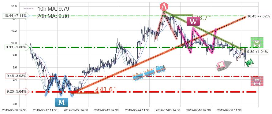 ♘ 阻力价格位9.93,可信任强度83.73%,距离最后交易2019-07-31 15:00形成的收盘价格9.75相差 +1.80%