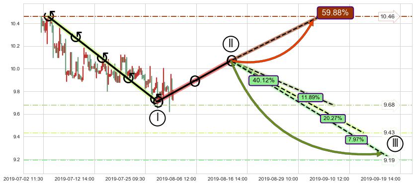 ➣ 预测:2019-08-06 15:00,【试探阻力】稳定目前下跌趋势的前提下,预测价格:9.73