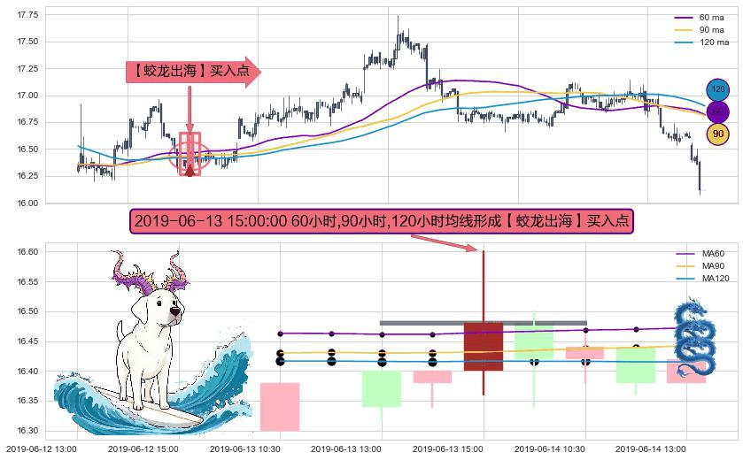 形态多维评估: ⚀ 2019-06-13 15:00:00小时显现 60小时-90小时-120小时均线 【蛟龙出海】买入点 看多信号,后市看涨,买入