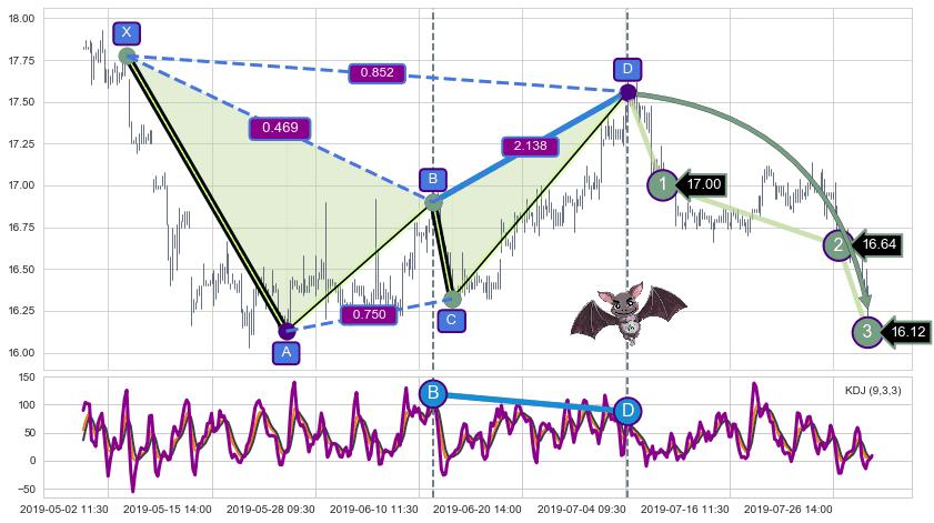 ➣ 已完成【蝙蝠】形态起点X: 05-03:15, 终点D: 07-04:10, 共243交易小时
