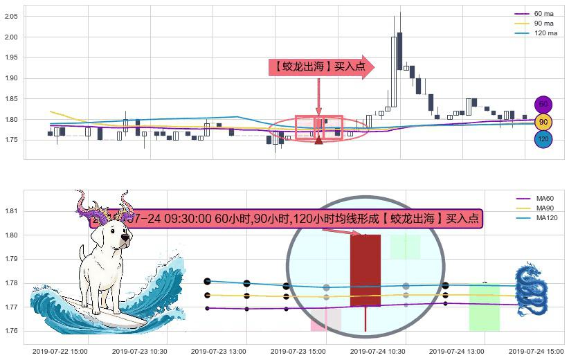 ⚀ 2019-07-24 09:30:00小时显现 60小时-90小时-120小时均线 【蛟龙出海】买入点 看多信号,后市看涨,买入