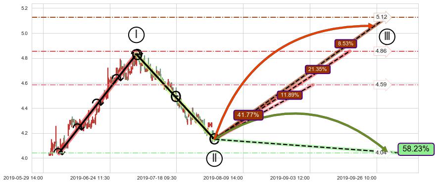 ➢ 循环浪继续向上【最低】位置(09-04:11, 4.59),匹配聚类样本比例28.47%, 可能性概率11.89%