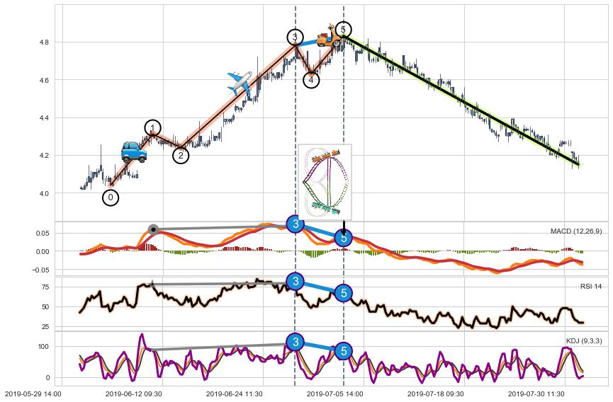 ➢ 1,3,5驱动浪MACD, RSI, KDJ走势都出现【常规背离】反转信号增强