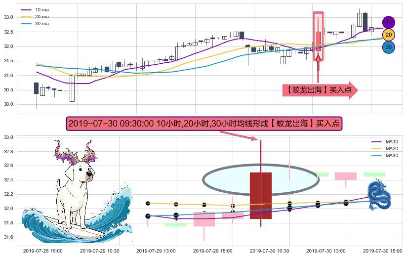 形态多维评估: ⚀ 2019-07-30 09:30:00小时显现 10小时-20小时-30小时均线 【蛟龙出海】买入点 看多信号,后市看涨,买入