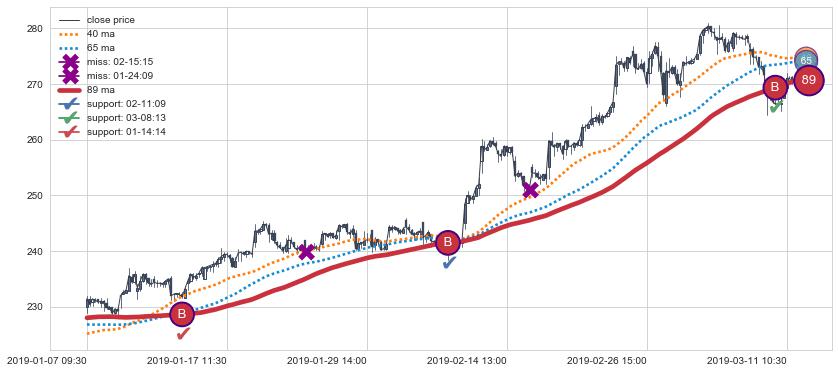 上涨趋势06-05 11:30-07-08 11:30,均线65, 89, 40确认关键支撑3处