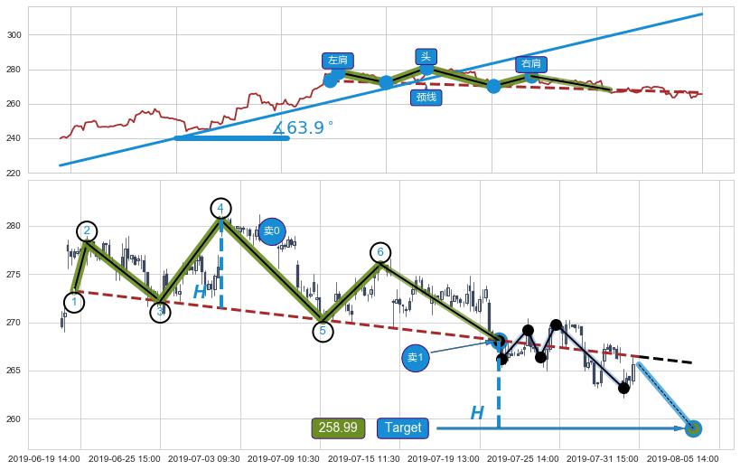 ➣ 【已确认突破】头肩顶 起点:06-14:13,突破点:07-22:13,形态共151交易小时
