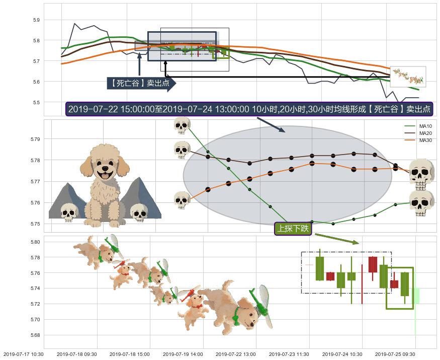 从2019-06-28 10:30至2019-07-03 13:00,共包含15个小时,阶段股价下跌-0.84%,阶段股价变动位移路程比: 1 : 4