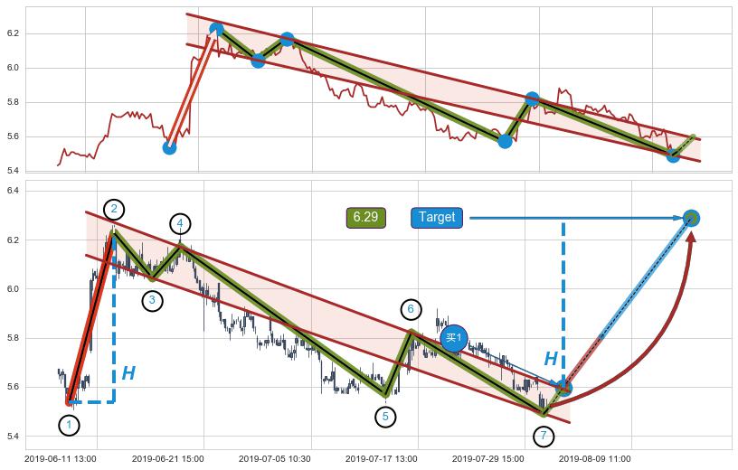 ➣ 最小中继整理涨幅→𝐇: 0.6920 (𝐇旗杆的长度:旗杆起点→顶点)