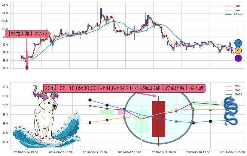 形态多维评估: ⚀ 2019-06-18 09:30:00小时显现 3小时-8小时-21小时均线 【蛟龙出海】买入点 看多信号,后市看涨,买入