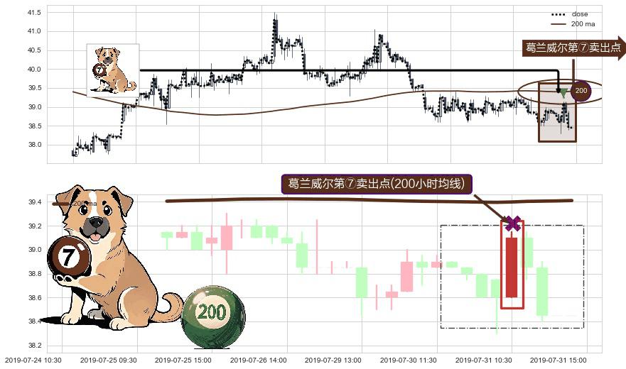 形态多维评估: ⚀ 2019-07-31 10:30:00-小时显现 葛兰威尔均线 200小时均线 第⑦卖出点 下降趋势的中继信号,后市看跌,卖出信号