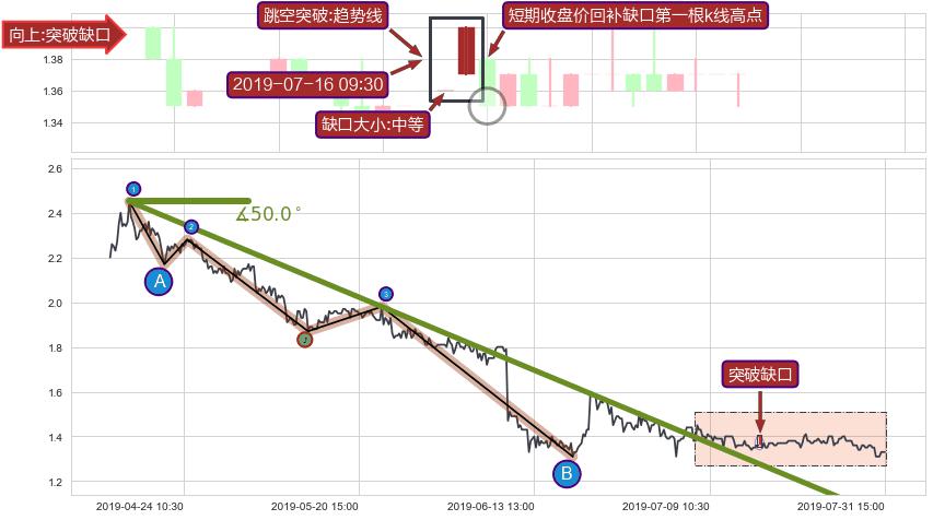 ➢ 最后的下跌趋势2019-04-15 09:30至2019-06-20 15:00:存在突破迹象,后续小反弹或者反转上涨