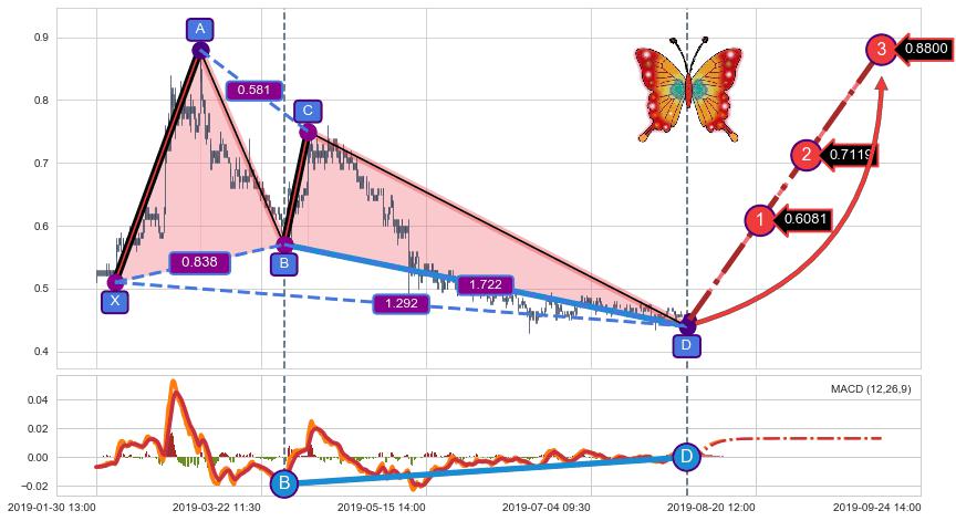 ➣ 已完成【蝴蝶】形态起点X: 02-08:15, 终点D: 07-31:11, 共694交易小时
