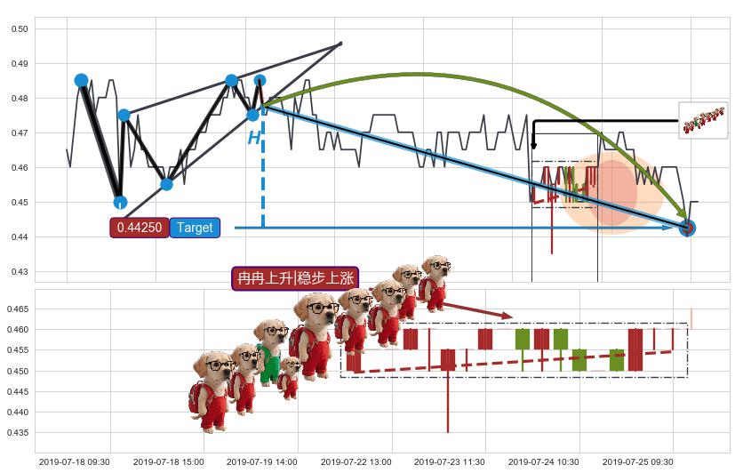 ➣ 【已达成】最小【整理】第一目标价格→(07-31:11: 0.44250 ), 后续继续【整理】下跌动力依然存在,下跌空间适中