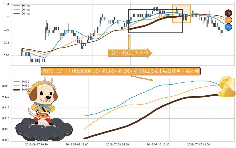 ⚀ 2019-07-03 10:30:00小时-2019-07-18 14:00:00小时显现 30小时-60小时-90小时均线 【烘云托月】买入点 看多信号,后市看涨,买入