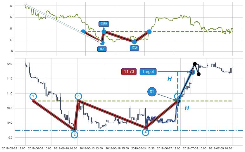 ➢ 【买1】: 激进型 买点 →(06-27:10: 10.74 )形成突破双重底【反转】形态