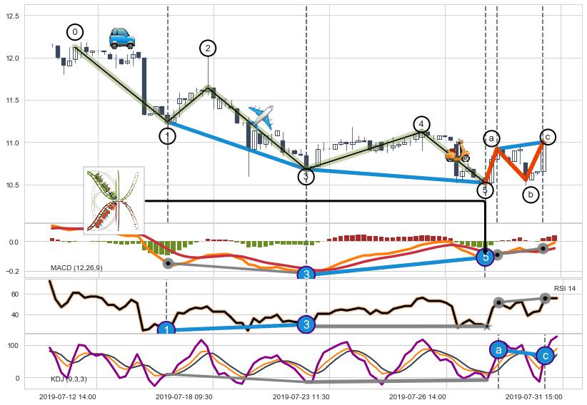 从2019-07-22 14:00至2019-07-31 15:00,共包含44个小时,阶段股价上涨3.23%,阶段股价变动位移路程比: 1 : 8