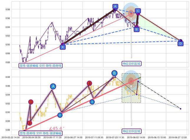 ➢ 谐波蝙蝠与趋势线信号事件周期长度级别相同,同周期信号事件