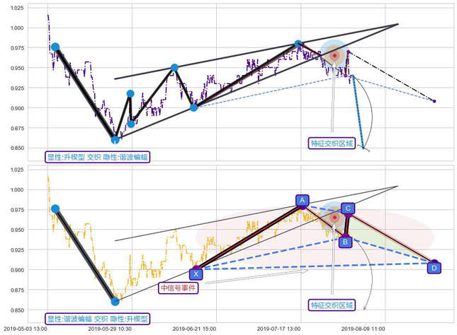 ➢ 谐波蝙蝠属【中级别信号事件】升楔型属【长级别信号事件】中长周期组合信号事件,中长事件长度比59.18%