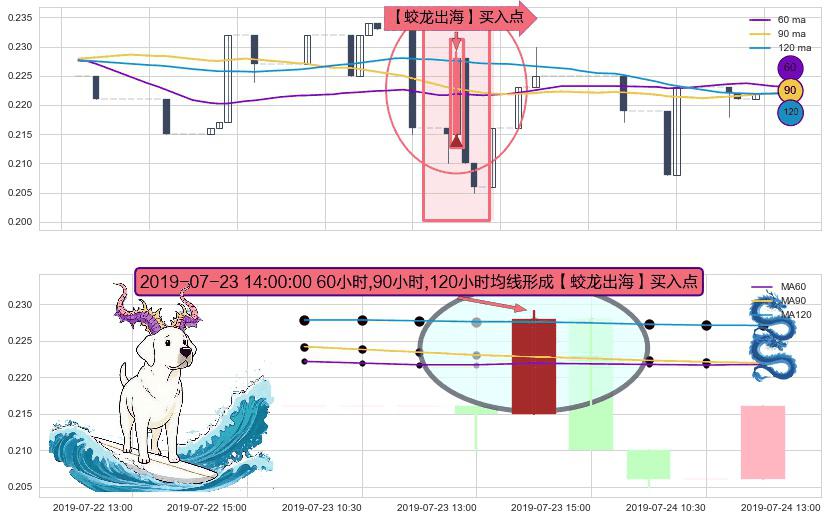 形态多维评估: ⚀ 2019-07-23 14:00:00小时显现 60小时-90小时-120小时均线 【蛟龙出海】买入点 看多信号,后市看涨,买入