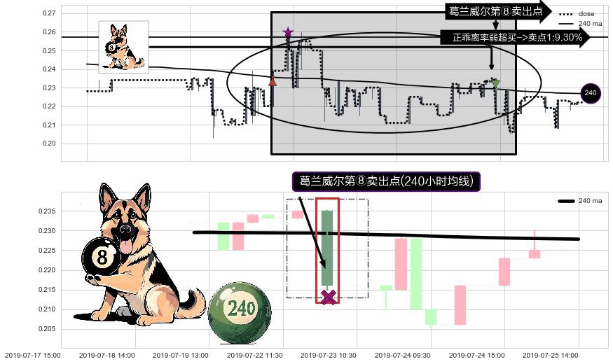 形态多维评估: ⚀ 2019-07-22 15:00:00-小时显现 葛兰威尔均线 240小时均线 第⑧卖出点 下降趋势的中继信号,后市看跌,卖出信号