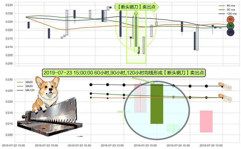 形态多维评估: ⚀ 2019-07-23 15:00:00小时显现 60小时-90小时-120小时均线 【断头铡刀】卖出点 看空信号,后市看跌,卖出