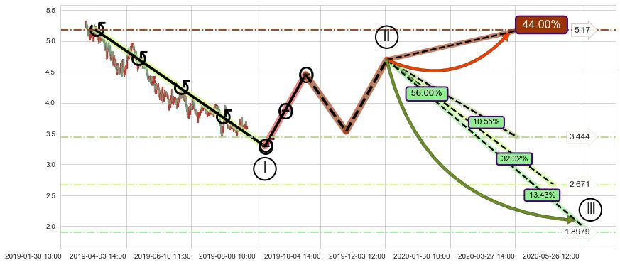 ➣ 循环浪继续向下【平均值】位置(05-01:15, 2.671),匹配聚类样本比例57.18%, 可能性概率32.02%