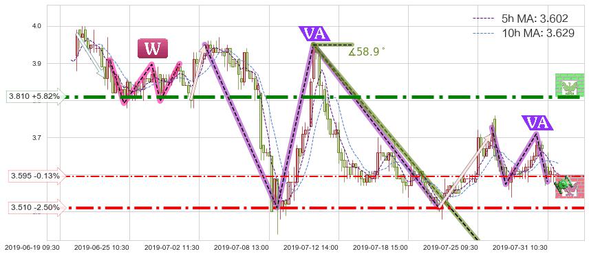 ♘ 阻力价格位3.810,可信任强度92.67%,距离最后交易2019-07-31 15:00形成的收盘价格3.600相差 +5.82%